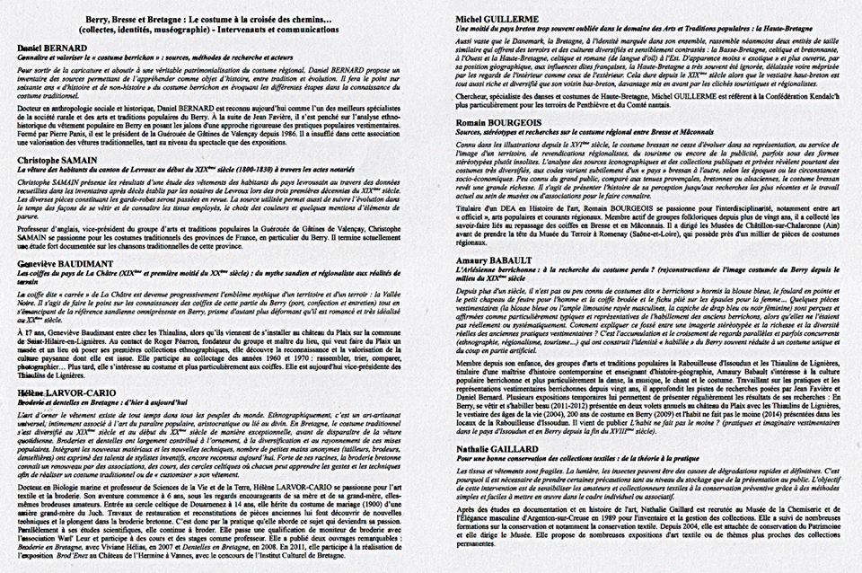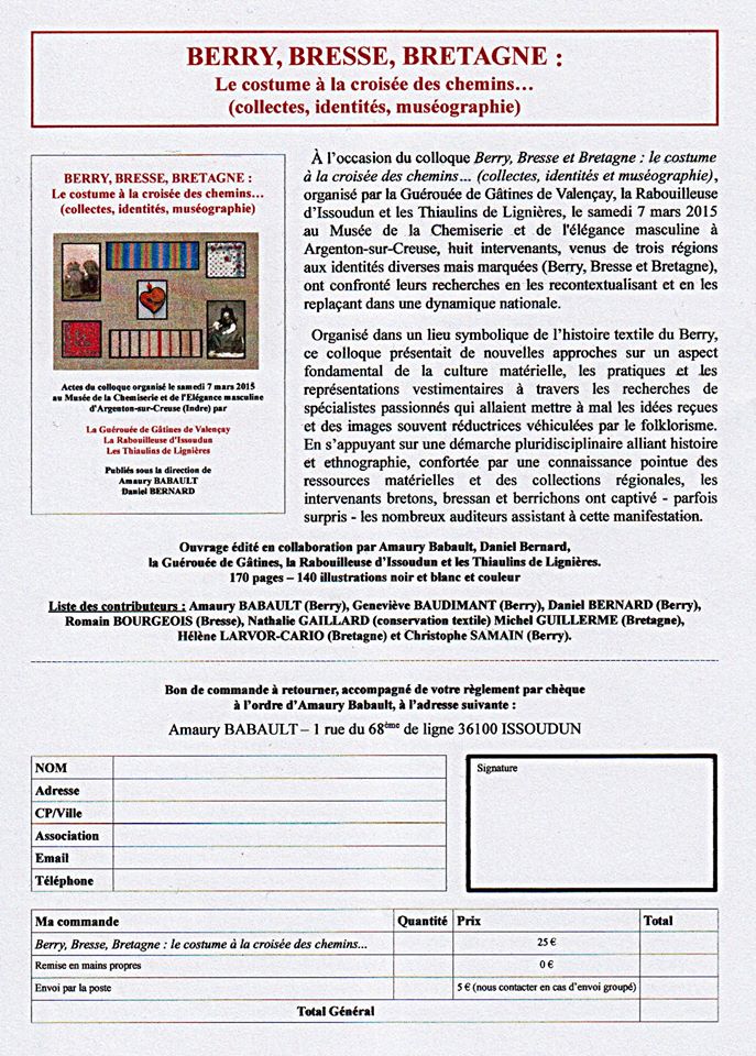 Colloque organisé par La Guérouée de Gâtines de Valençay, La Rabouilleuse d'Issoudun, Les Thiaulins de Lignières, Le Musée de la Chemiserie et de l'Élégance masculine en date du 3 mars 2018 à Argenton-sur-Creuse.